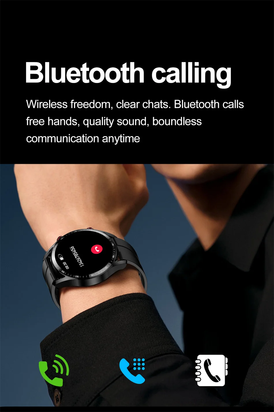 New 1.53Inch Bluetooth Call Smart Watch Men Multi-Sport Mode Heart Rate Health Monitoring Waterproof Business Smartwatch