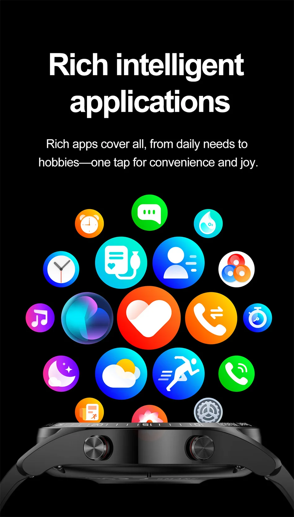 Heart rate, sleep tracking, wrist-raise screen activation, weather, WeChat Movement, notifications, reminders (messages, hydration, prolonged sitting, alarm), women's health, stopwatch, countdown timer, find phone, find wristband, shake-to-take-photo, watch face switching, music control, settings (language selection, brightness adjustment, screen-on duration, vibration settings, factory reset, version information), Power On/Off Logo, Components (Function Editing), Password Lock, Breathing Training, Exercise, Exercise History, Do Not Disturb Mode, Power-Saving Mode, Low Battery Alert, Voice Assistant (Siri), Call Function, Frequent Contacts, Phone Dial Pad, Split Screen (Sidebar), Flashlight, Payment Code, Scan to Connect, Business Card (Make Friends), Calculator, Calendar.